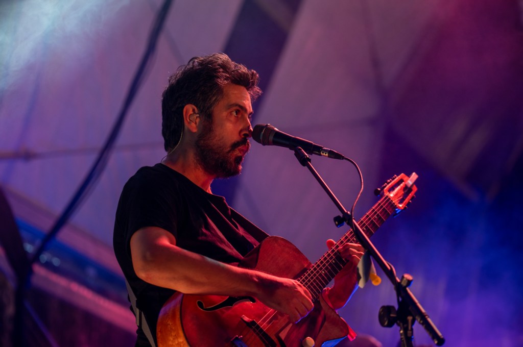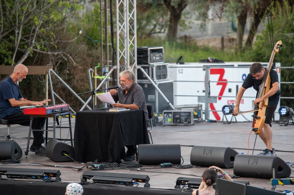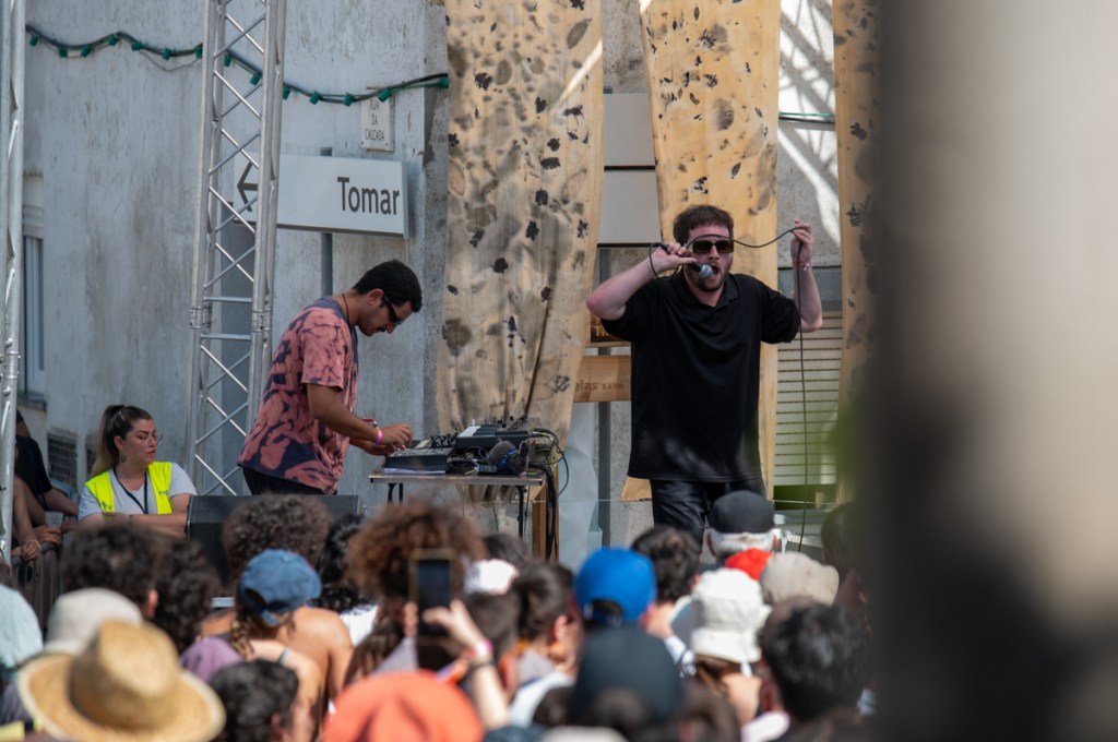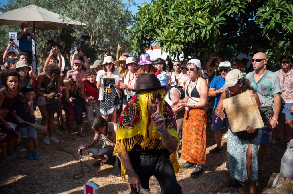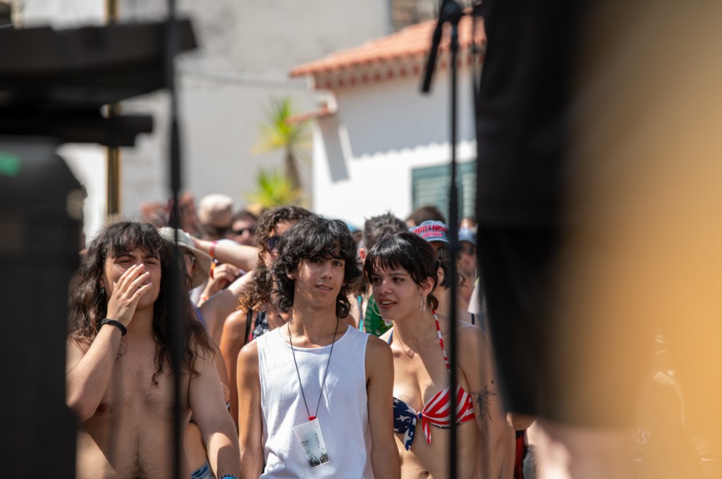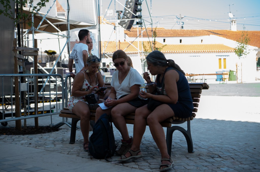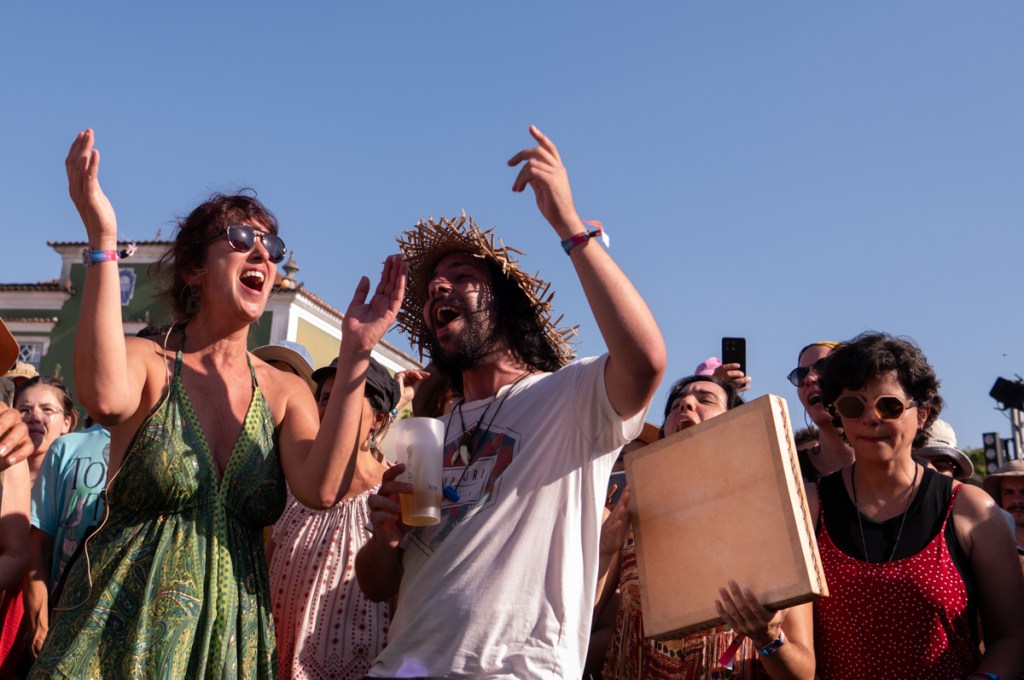 É sexta-feira e está ainda mais calor. «Entre nós e as palavras há metal fundente», dirá Adolfo Luxúria Canibal mais tarde, no palco Zeca Afonso, com Estilhaços. Mas, antes de lá chegarmos, apanhamos um autocarro cheio de gente que mede as poucas horas de sono com a satisfação do festival, e o resultado é muito mais comprido que a noite anterior. Meçamos sempre nós as nossas mínguas com alqueires de alegria. «Mas haverá uma idade em que serão esquecidos por completo / os grandes nomes opacos que hoje damos às coisas», continua Cesariny, ou, melhor, Adolfo. A voz, o contrabaixo, o piano e a guitarra constroem uma melodia côncava. Esta concavidade, grande nome opaco, fica em nós, anónima, para sempre.