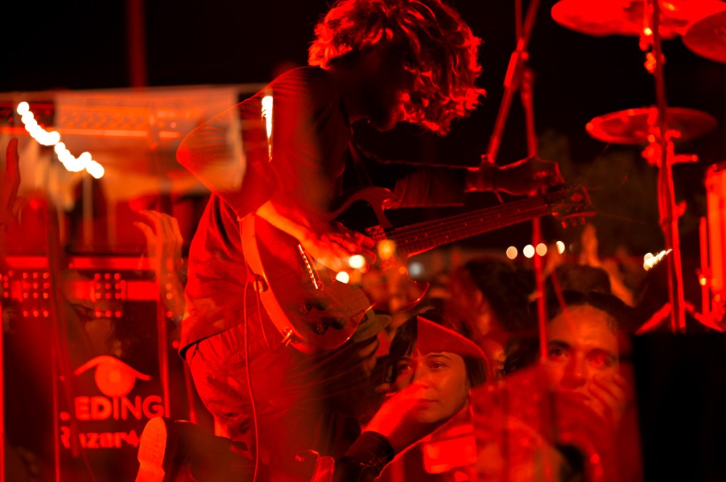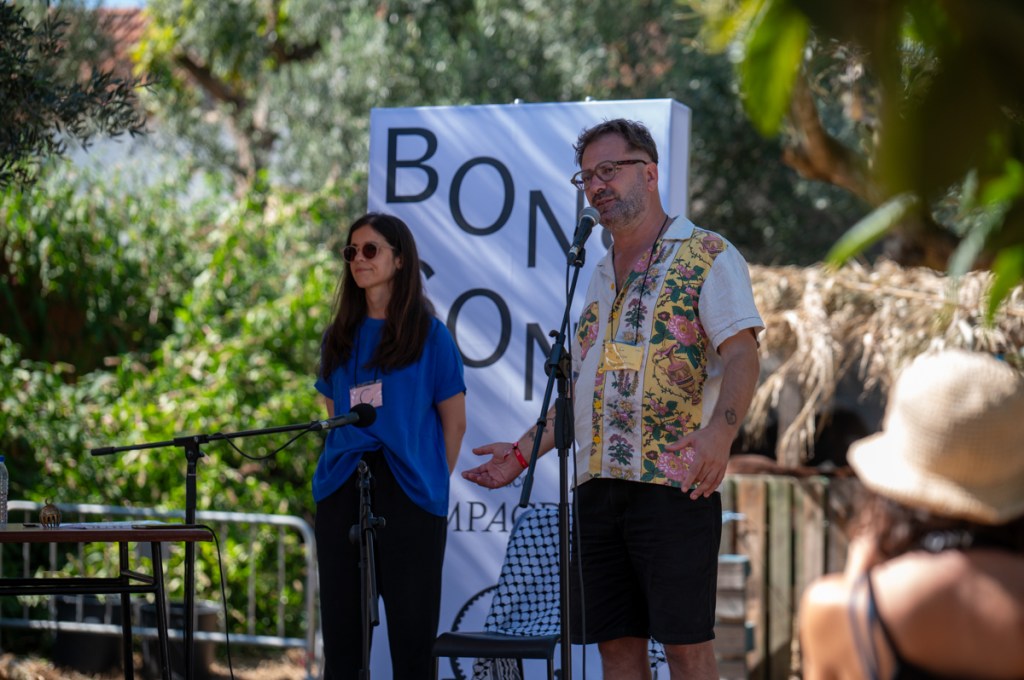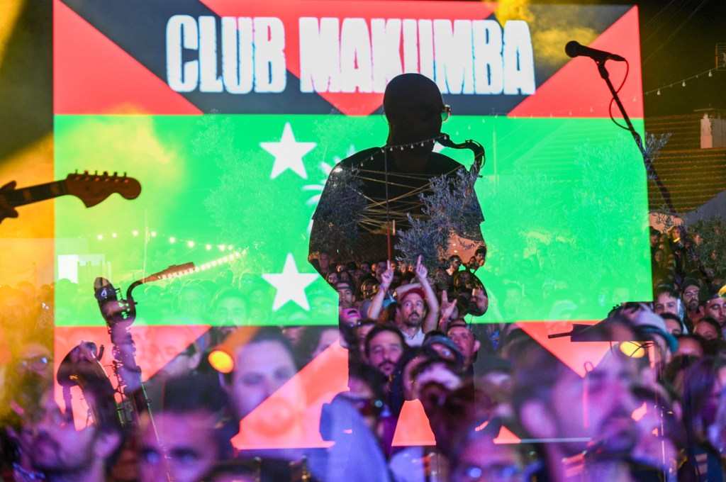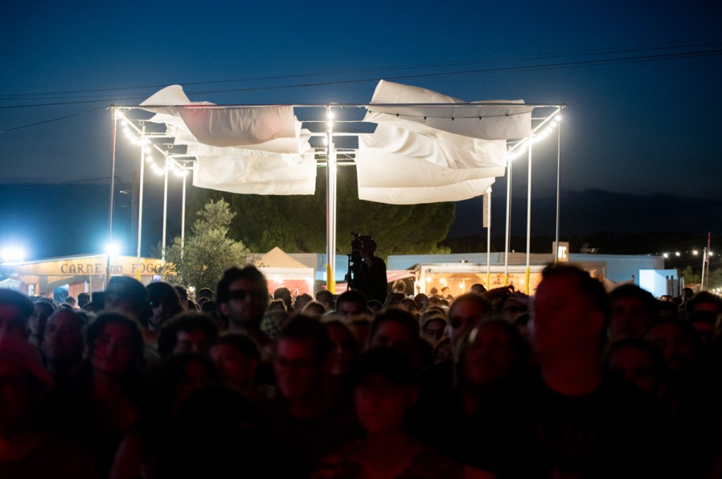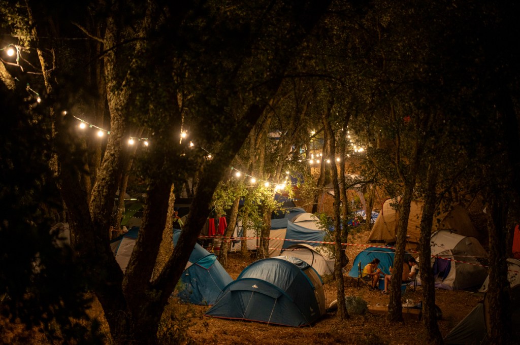 À uma da manhã ainda está calor e vemos os Club Makumba através dos ramos das oliveiras. Passa por nós um rapaz a falar de cicatrizes mentais. As luzes penduradas sobre as tendas do parque de campismo desenham padrões que parecem cicatrizes.