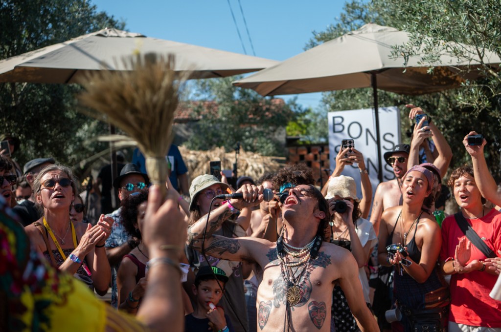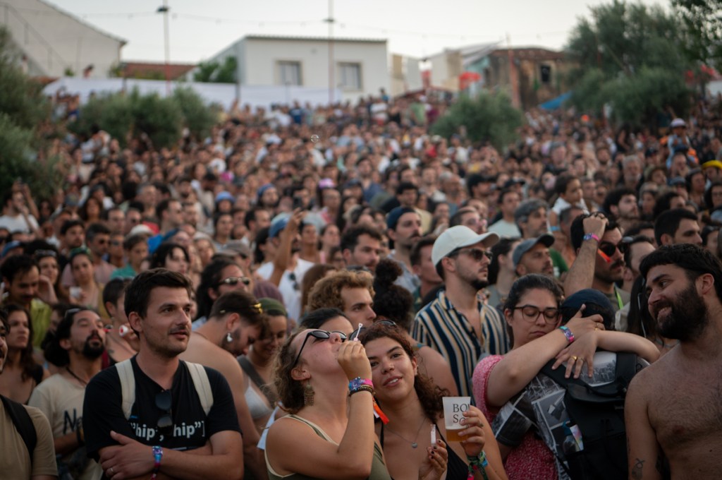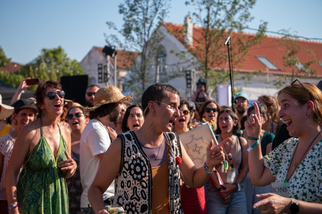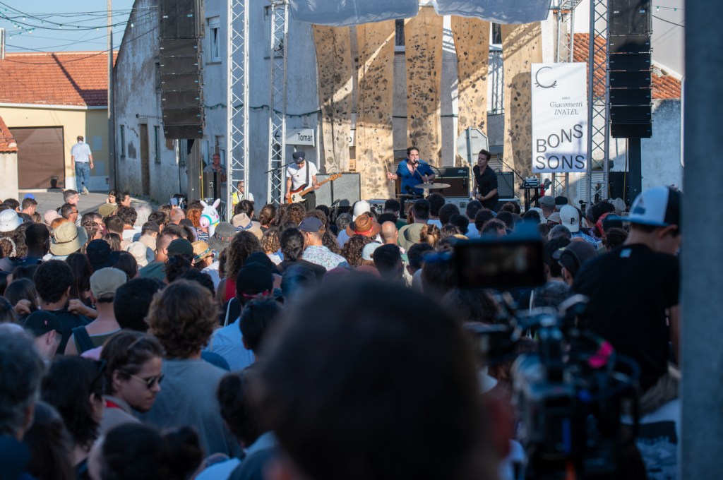«Quero pôr minha tristeza em liberdade condicional», canta Raquel Pimpão dos Femme Falafel no Palco Giacometti. Começa aqui o nosso Verão. O Zé aos comandos do som, de cachimbo na boca, com a sua imponência de Capitão Haddock, bem mais caloroso que a personagem da BD. Estão quarenta graus à sombra, ou parecem estar. A afluência, neste primeiro dia de Bons Sons, uma quinta-feira, surpreende toda a gente. Somos muitos a estender tristezas ao sol e ao som: cantar, eis um bom caminho para espantar os males, e Diana Combo diz-nos, no cenário bucólico do palco MPAGDP (A Música Portuguesa a Gostar Dela Própria), que vale tudo, que «cantar bem» é um conceito obsoleto. Enchemos os pulmões e espantamos uns quantos males.