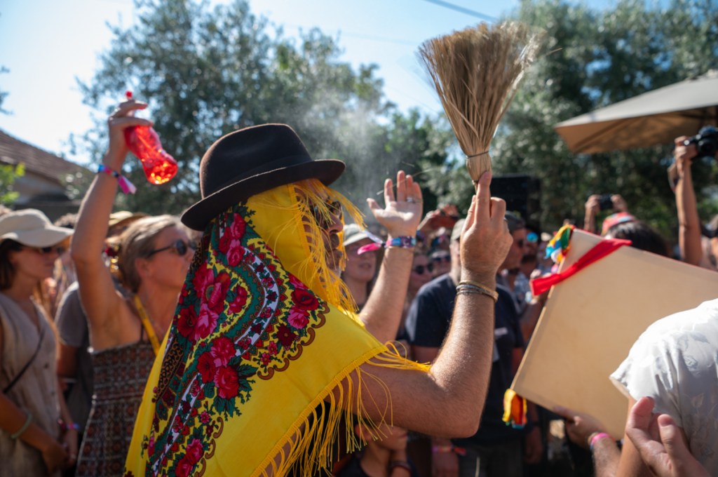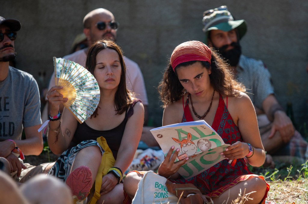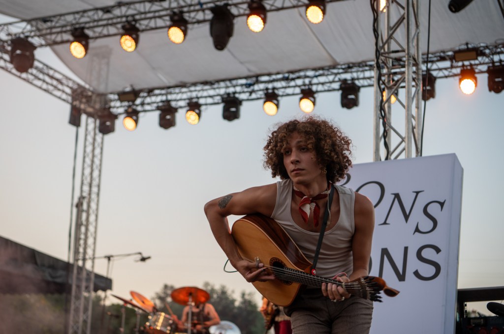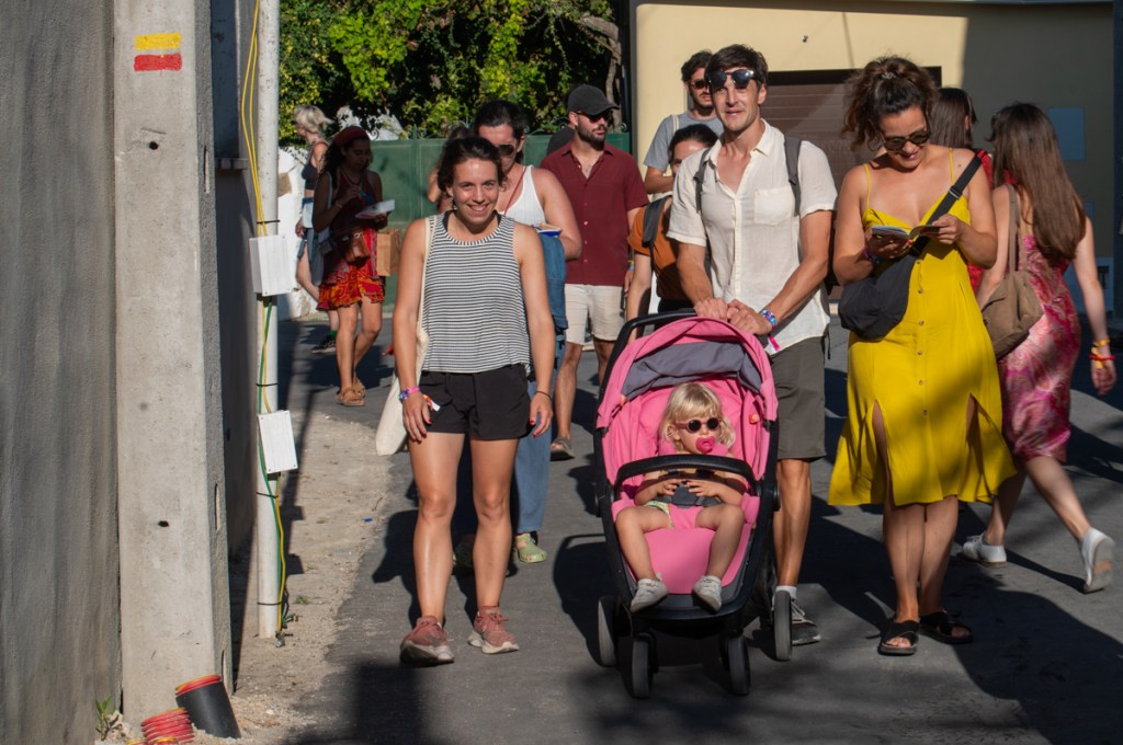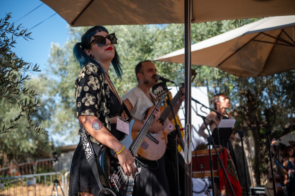 «Quero pôr minha tristeza em liberdade condicional», canta Raquel Pimpão dos Femme Falafel no Palco Giacometti. Começa aqui o nosso Verão. O Zé aos comandos do som, de cachimbo na boca, com a sua imponência de Capitão Haddock, bem mais caloroso que a personagem da BD. Estão quarenta graus à sombra, ou parecem estar. A afluência, neste primeiro dia de Bons Sons, uma quinta-feira, surpreende toda a gente. Somos muitos a estender tristezas ao sol e ao som: cantar, eis um bom caminho para espantar os males, e Diana Combo diz-nos, no cenário bucólico do palco MPAGDP (A Música Portuguesa a Gostar Dela Própria), que vale tudo, que «cantar bem» é um conceito obsoleto. Enchemos os pulmões e espantamos uns quantos males.